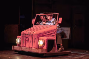Juba lavastuse esimene stseen pakub ohtralt mõnusat huumorit ja tõlkijale väljakutseid sõnamängude näol, mida toetatakse lavalise tegevusega. Kaks paadunud pätti Mitch ja O’Brien põgenevad vanglast, kuid autoni jõuab ainult üks — Mitch jooksis kiiremini, valvekoerad said aeglasema O’Brieni kätte. Autos ootab Cooper.