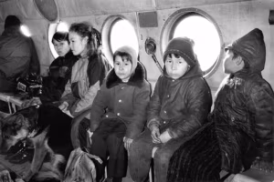 Filmi „Lend” võtetel. Lapsed lennul kooli.