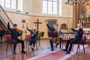 Keelpillikvartett M4GNET: Robert Traksmann (I viiul), Katariina Maria Kits (II viiul), Marcel Johannes Kits (tšello) ja Mart Kuusma (vioola).