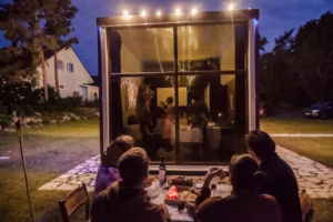Nii Seren Oroszvary kui Liisa Saaremäeli rännakutes kostitati osavõtjaid hea ja paremaga rännaku lõppedes, Viimsis sai nälga kustutada ka etenduse jooksul. Viimsi maja- ja metsarännak lõppes osavõtjate jaoks kaetud laua taha istumisega, algas pidu veini ja suupistetega. Lavastaja ütleb, et kui keha on maja, siis on pärast pikka, rohkem kui kolm tundi kestnud hilisõhtust rännakut aeg oma maju ja kehi puhata. Ka etendajad pidutsesid — maja sees.