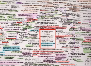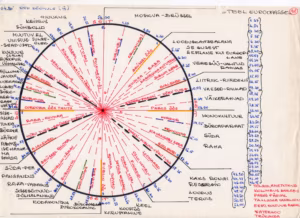 Peep Puksi skeem-käsikiri oma filmile „Teel Euroopasse”, 1995.