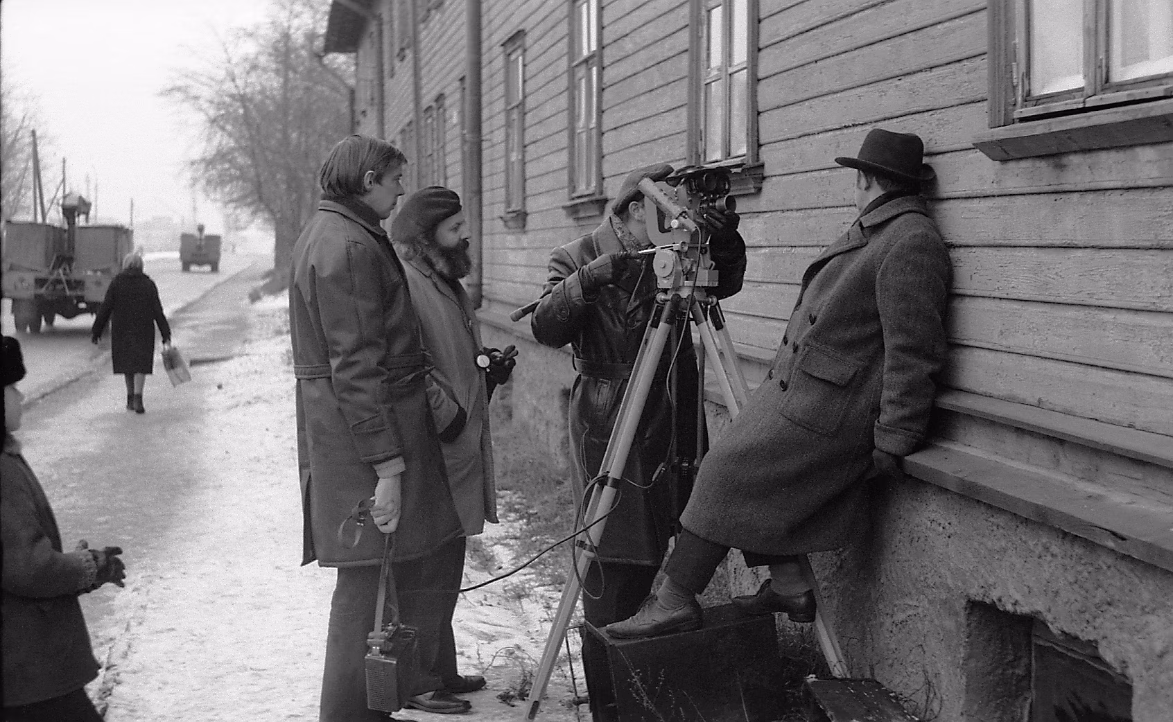 Ning peaaegu ainsad fotod tollest juurdevõtete ajast ongi siinsed Vallo pildid. Mina ise olen juba tagasi Tallinnfilmis, ehkki käin helimehena ka nendel võtetel. Välja arvatud üks isevärki võttepäev Nooruse tänaval, mis nüüd teadupärast Suur-Kloostri on. Ratsapolitseinikud, ehmunud mass neiusid, uskumatult efektselt kõlav hobuste kabjaplagin munakivisillutisel. Mind asendab kolleeg Jaak Elling, kes algaja helimehena mäletab tänaseni režissöör Karasjovi kui tervet võtteplatsi täitvat persooni.