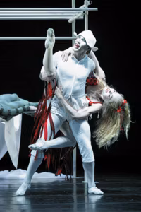 Jaakko Eerola ja Minna Tervamäki Glen Tetley balletis „Pierrot lunaire”. Soome Rahvusballett, 2003.
