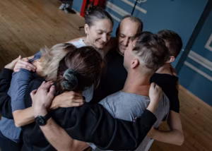 Kalle Aasamäe, Kaspar Aus, Silver Soorsk ja Rain Saukas tulid tantsualale meie nn meesteprojektiga.10 Rain Saukas, kes praegu elab ja töötab Ameerikas, on hariduselt graafiline disainer. Tal tekkis sügavam huvi tantsu vastu Fine 5 lavastusi vaatamas käies. Rain tuli treeningutele ja töötas end sedavõrd üles, et kaasasime ta oma lavastustesse. Ja kui me küsisime, mida tantsutreeningud talle on andnud, ütles ta, et on õppinud oma keha ja meeli jälgima. Seetõttu on tal nüüd parem enesetunne ja tervis ning ta on enesekindlam ja ka julgem end sõnaliselt väljendama — kõik see mõjutab positiivselt tema tööd graafilise disainerina.