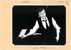 Juhan Viiding ja Tõnis Rätsep esitamas „Lavakava” 1982 Tallinnas Kirjanike Majas.