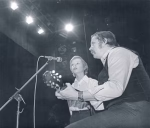 Toomas Uibo ja Väino Uibo Ugala kontsertlavastuses „Laulan sõbraks öö ja päeva”, 1981.