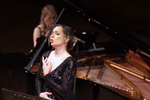 Mirjam Mesak (sopran) ja Ewa Danilewska (klaver). Kavas Eduard Tubina, Ester Mägi ja Sergei Rahmaninovi laululooming. Estonia kontserdisaal, 20. X 2022.