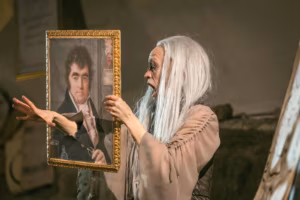 Detektiivilugude eelkäijaks peetakse gooti romaani — 18. sajandi lõpus kummituslikes lossides või härrastemajades juhtunud õuduslugusid.5 Gootilikus atmosfääris, mille on loonud kunstnik Britt Urbla Keller, tegutseb sarnaselt Dupiniga ka armunud alkeemik. Kellerteatri teine lavastus „Armunud alkeemik” (2019) oli sõnadeta maagiline õuduskomöödia, kus publiku närvid tõmbas mustkunstitrikkidega pingule Meelis Kubo. Vaevatud olemisega ja maailma kõige kurvemate silmadega alkeemik trikitab vaatajatega, seda nii kulla kui ka armueliksiiri loomisel. Fantaasiale annavad hoogu juurde varjud, valgus ja õõvastavad helid. Kui lisada veel juurde elemendid, mis tegelikkuses liikuda ei tohiks (näiteks „maharaiutud käsi”), jääb teatrimaagia võitluses kaine mõistusega peale.