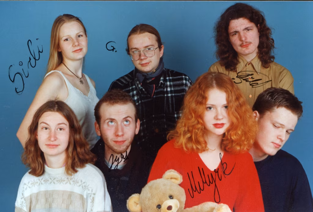 TNT teeb Siurut. Ees: Eeva Klaas, Jürgen Rooste, Marie Myrk ja Wimberg, taga: Sirli Kukk, Marko Kivimäe ja Ivar Sild. Foto on tehtud 14. X 1998 Tallinna Kirjanike Majas TNT kirjandusõhtul „Väikesed nukud”.