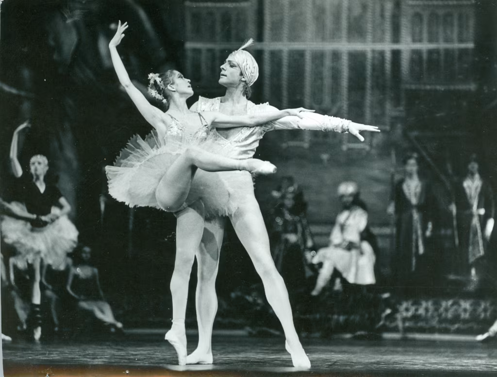Irina Härm (Gamzatti) ja Viesturs Jansons (Solor) Ludwig Minkuse balletis „Bajadeer” 1991. Foto RO Estonia arhiivist