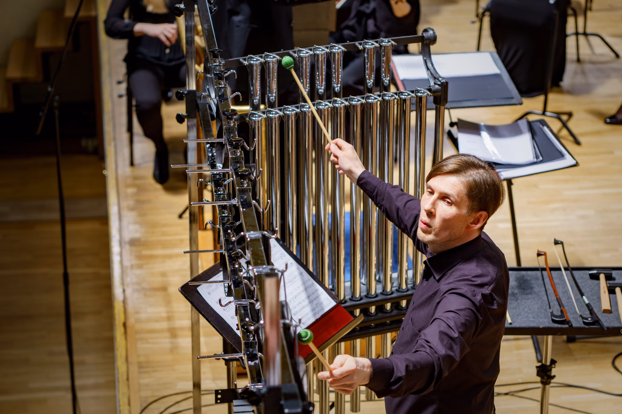 Vambola Krigul Tatjana Kozlova-Johannese teose „Tumedad tiivad” esiettekandel ERSOga 28. aprillil 2023 Estonia kontserdisaalis.