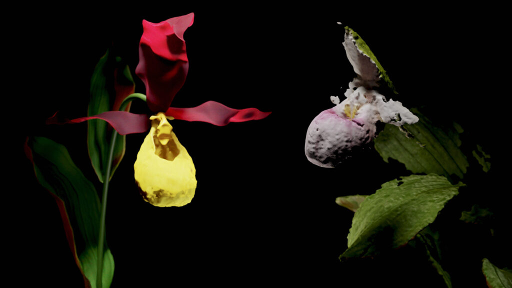 Film on üles ehitatud omamoodi triptühhonina: alguses näeme vigaseid, augulisi skaneeringuid õitsvatest orhideelistest, mis on asetatud musta pimeduse taustale, seejärel lillede kasvamist (üles võetud aegvõttena Kaiseli stuudios; kasvandikud ja pinnas pärinesid Kõverdamalt) ning lõpuks psühhogeograafilisi kollaaže filmitud maastikuvaadetest, millesse on paigutatud 3D-mudeldatud, tontlikult hõljuvad kännud ja kuivanud puutüved.
