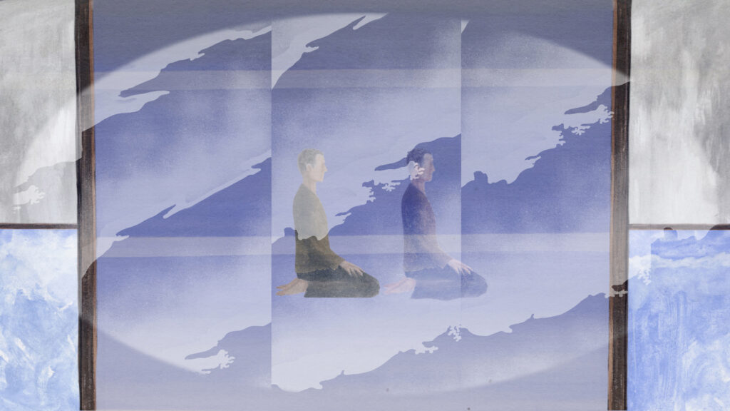 Inimese kohalolu „Väravas” sama hästi kui puudub. Vaid põgusalt näeme ekraanil rätsepaistes istuva inimese kujutist. Filmi subjektiks ongi parasjagu saalis istuv vaataja. Enamus visuaalist on esitatud mediteerija mõtterännakuna või suisa muutunud meeleseisundit esile kutsuva repetatiivse mustrisäbruna.