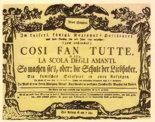 Viini Burgtheateris 26. jaanuaril 1790 esietendunud W. A. Mozarti ooperi „Così fan tutte” afišš.