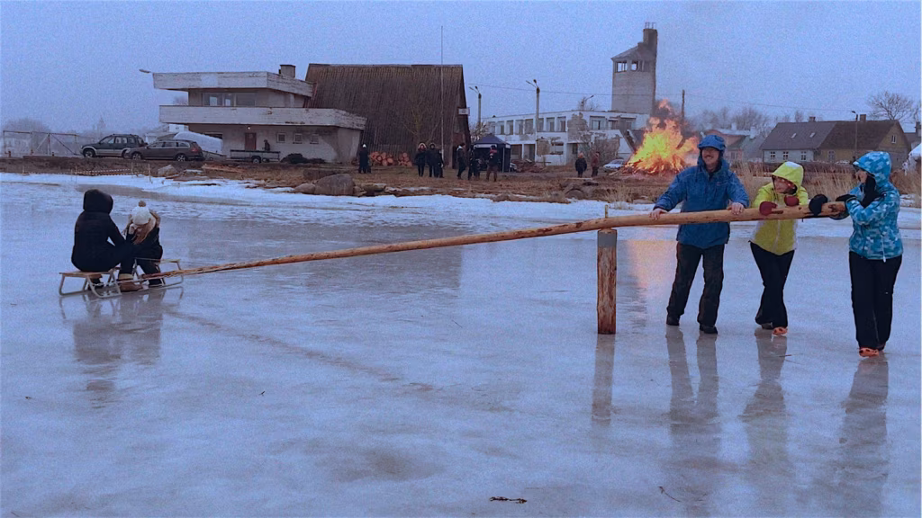 Vaikse kulgemisega dokfilm Noarootsi ja Prangli jääteest, ja peab vist ütlema, et liiga vaikne, sest ka pingutades on keeruline kuulda, mida see täpsemalt räägib. See on mediteeriv film, milles on oma võlu, sest ta ei topi sulle oma probleemiasetust kaela, ei agiteeri kui-dagi, aga mida ta siis täpsemalt teeb, ei ole kerge määrata. Film algab ja lõpeb väljamõeldud tsitaatidega Massalia meresõitjalt Pytheaselt, kes teatavasti on ühe Eestiga seotud kõige kuulsama vandenõuteooria peategelane. Pytheas nägi ju tardunud merd ja arvas, et siin maailm lõpeb, kas ta aga ka tegelikult Väinamere äärde jõudis, ei saa me kunagi teada. Minu žürii kiidab igasugused mõttemängud heaks, aga tõdeb ka, et Pythease pookimine siia on liialt meelevaldne ning et see film ei suuda päriselt kohale toimetada seda jää ja jäätumise sümbolismi ja tähendusvälja, mis tekstina seda internetis imperatiivse otsusena saadab. Näiteks teab juba ka eestikeelne Vikipeedia, et see film üheselt „peegeldab inimeste soovi olla õnnelik kiiresti muutuvas maailmas, isegi kui see maailm on purunemas nagu kevadine jää, ning vaatleb Eesti rannarahva elu jäätee veerel Kreeka rännumehe Pythease silmade läbi 23 sajandit pärast tema külaskäiku aestide maale”. See on pigem soovmõtlemine või siis ebaõnnestunud eelhäälestamine ja on liiga palju tahta, et vaataja ise selle filmist välja loeb, rääkimata sellest, et aestidest ei teadnud Pytheas midagi. Kindlasti lisab „Jäätee veerel” mingi mõõtme rannarahva maailma kajastamisse eesti filmiloos, aga oma ülesehituses takerdub ta iseenda otsa ja ei leia selget fookust. Näiteks väga toredad ja huvitavad on jäätee valvuri, vana Jaanuse mõtisklused, kuid nad lahustuvad mingisse üldisesse sihitusse, jäävad liialt taustale. Jaanusel oleks kindlasti rohkem põnevat olnud rääkida ja päris peategelaseks ta ei muutu.