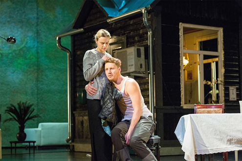 Maksim Gorki, „Väikekodanlased”. Lavastaja Kertu Moppel. Tatjana — Liisa Saaremäel ja Nil — Hendrik Toompere jr. Esietendus 16. III 2018 Eesti Draamateatri suures saalis. Aron Urbi foto