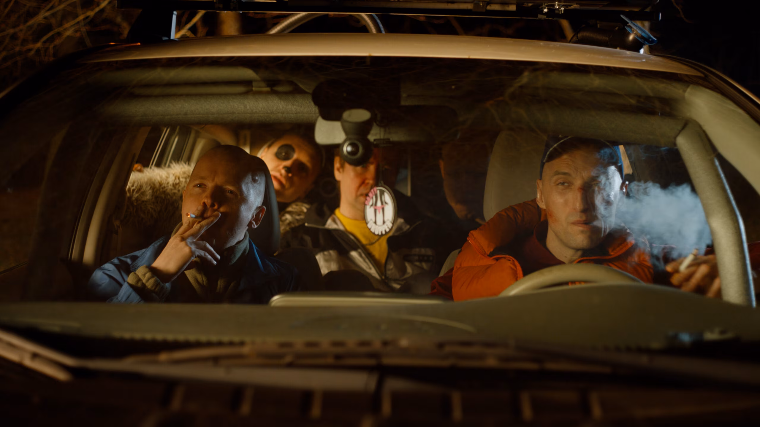 „Tulnukas 2”. Poisid autos. Taga Ott — Vallo Kirs ja Jarmo — Indrek Ojari. Ees Märt ja Valdis.