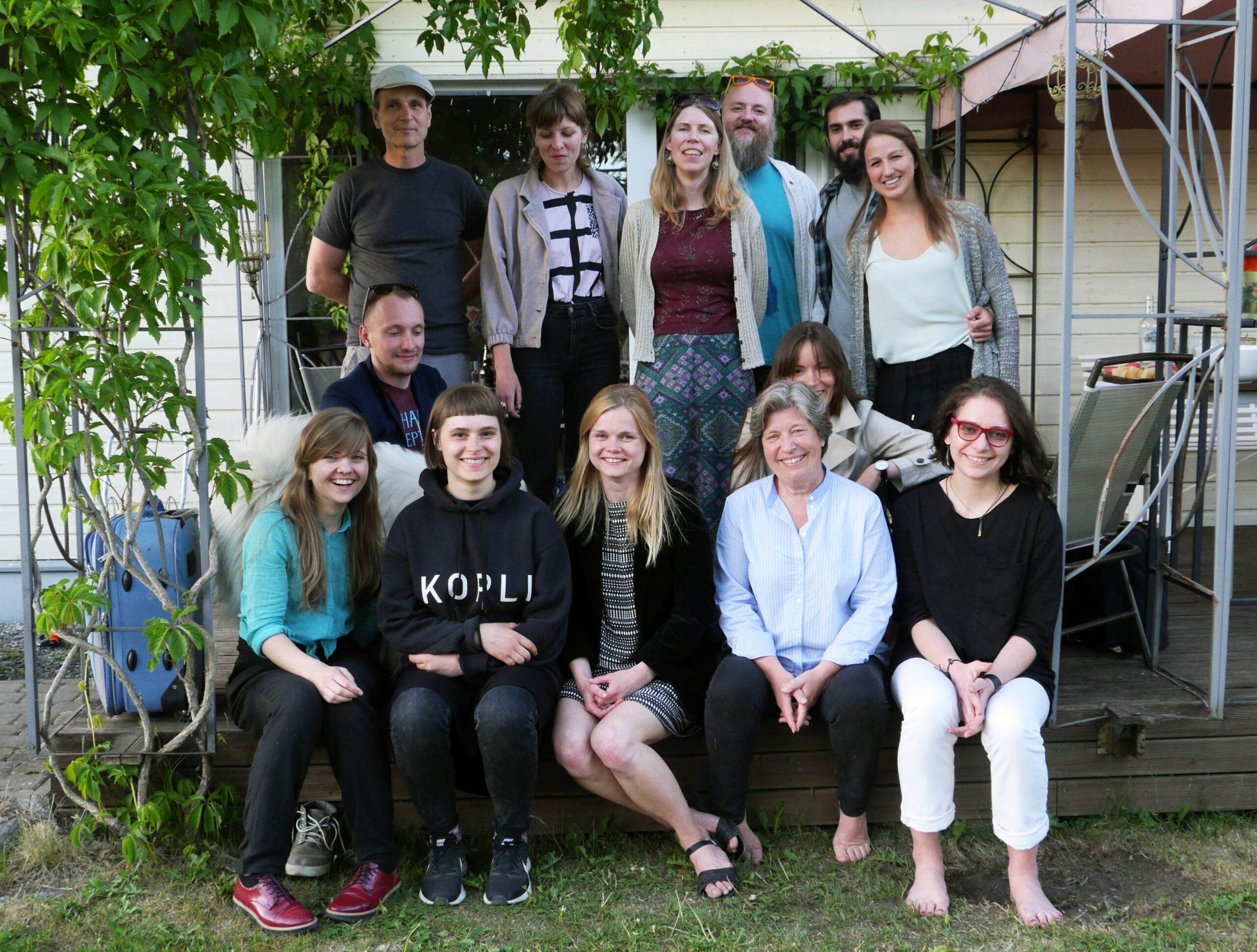 Värsked dokumentaalfilmi magistrid 2018. aastal koos õppejõudude ja juhendajatega kursuse lõpupeol Järvekülas.