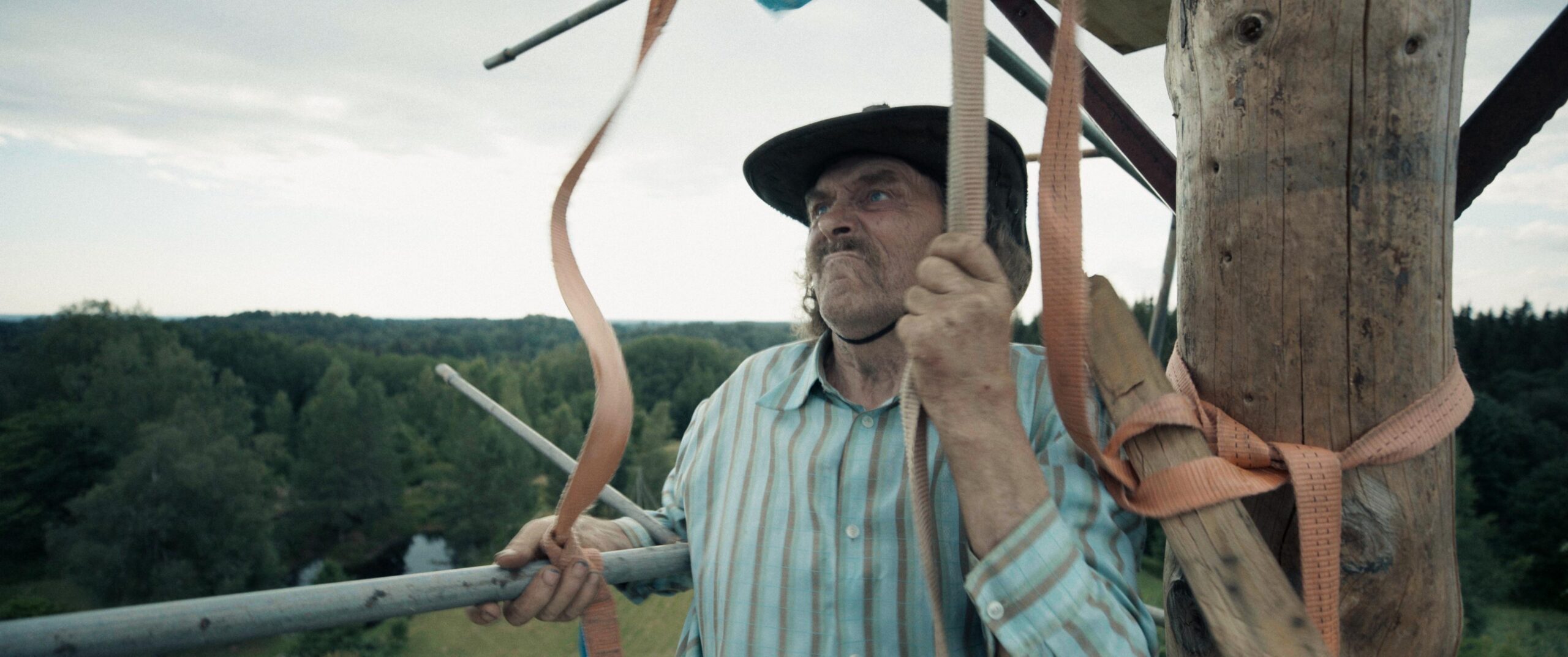 Huvitaval kombel aga ei mõelnud ma filmi vaadates mingil hetkel enam niivõrd Kaljule kui sellele, et Kullar Viimne on läbi oma karjääri tegelenud mingite elementidega, mille juurde ta ikka ja alati ringiga tagasi jõuab. Otsene sild tekib tema auhinnatud 2011. aasta dokumentaalfilmiga „Hing”, mis rääkis Eesti ainsast naiskorstnapühkijast. Ka seal oli peategelasel vaja ronida kõrgemale; see allegooriline taeva poole pürgimine polnud aga talle mitte lihtsalt töö, vaid eesmärk omaette, midagi sõnulseletamatut. Viimse filme on tihtipeale iseloomustanud omamoodi vertikaalsus; sakraalses perspektiivis esindasid seda kõrgema jõu tajumist portreefilm Dolores Hoffmannist „Jagatud valgus” (2018) või ka Ameerikas taastatava eesti kiriku lugu avav „Hingemaa” (2016). Ka Seaküla Simsonist rääkivas „Põrgu katlakütjas” (2023) roniti kuskilt sügavast pimedusest pidevalt valguse poole. „Tornis” on aga seesama kujund veel palju täpsem, isegi nii täpne, et iga vaat et fotona paika seatud kaader hakkab omaette kõnelema. Seejuures on väga oluline rõhutada, et filmi pealkirjas mainitud torni näeme tegelikult alles filmi viimasel veerandil, enne seda on see kõik lihtsalt Kalju lõputu võitlus iseendaga: ta üritab kogu aeg endast parem olla ja maailmast jagu saada, ületada ehk isegi surelikkust, näidata, et miski pole võimatu. Me ei kuule seejuures aga mitte ainult Kalju hingeldamist, mida ma juba varem mainisin, vaid ka defineerimatut pomisemist, mis kõlab kui salajane loits, mille abil ta tegelikult end ümbritsevat loodust kontrollib. Kui ta aga lõpuks päriselt torni tippu jõuab, saab temast üleelusuurune kangelane, hetkiti justkui Kalevipoeg või Herakles, kes suudaks vabalt, ühe sõrmega, rändrahnugi paigast liigutada. Usun, et nendel hetkedel usub ka Kalju ise, et on võitmatu. Ka mina tahan seda kõike uskuda ja siiralt usungi, vähemalt hetkeni, mil argireaalsus sisse tungib ja Kalju astub dialoogi meie nörritavalt normaalse päriseluga.