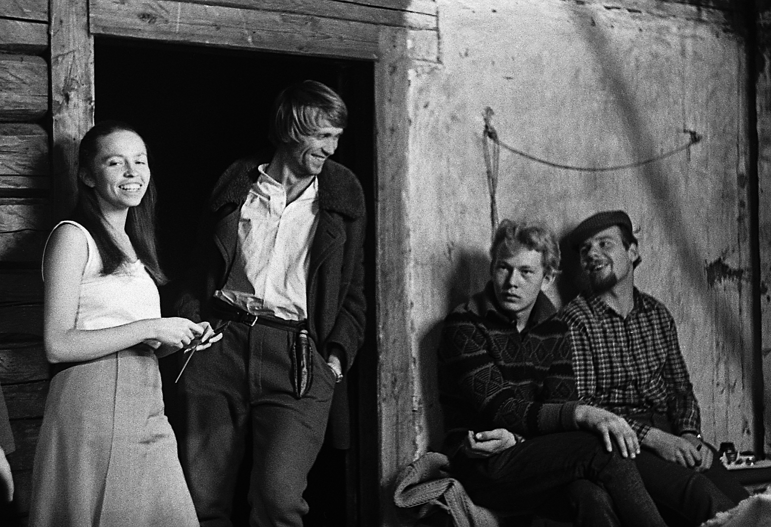 „Lindpriide” võtetel Metsatalus. Uksel Illi ja Killi osatäitjad Ene Rämmeld ja Ago-Endrik Kerge. Paremal istub operaatori assistent Rein Orn. Lustlik filmitöö?