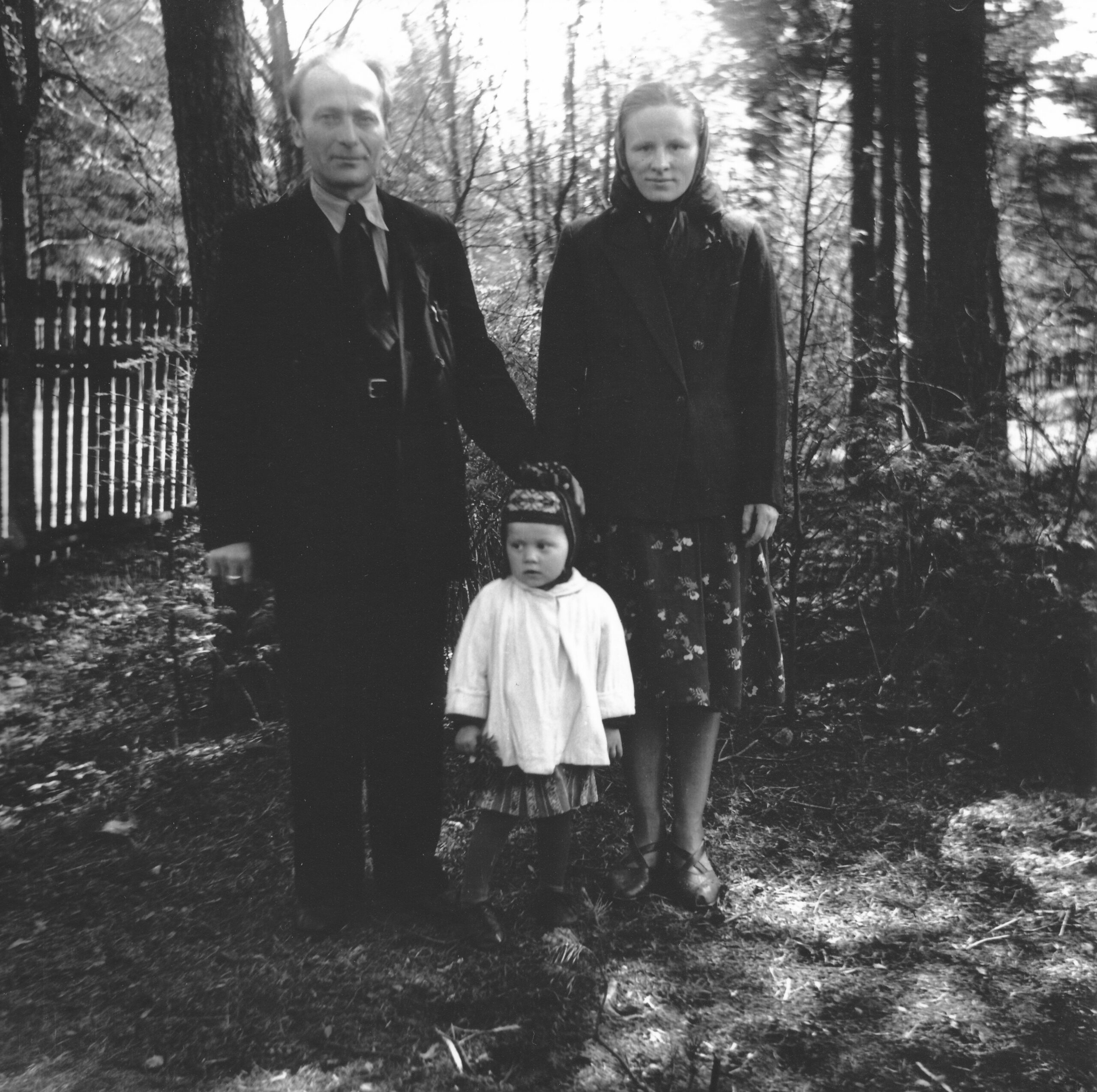 Õie Sarv oma vanemate Ivani ja Katiga koduaias Nõmmel.